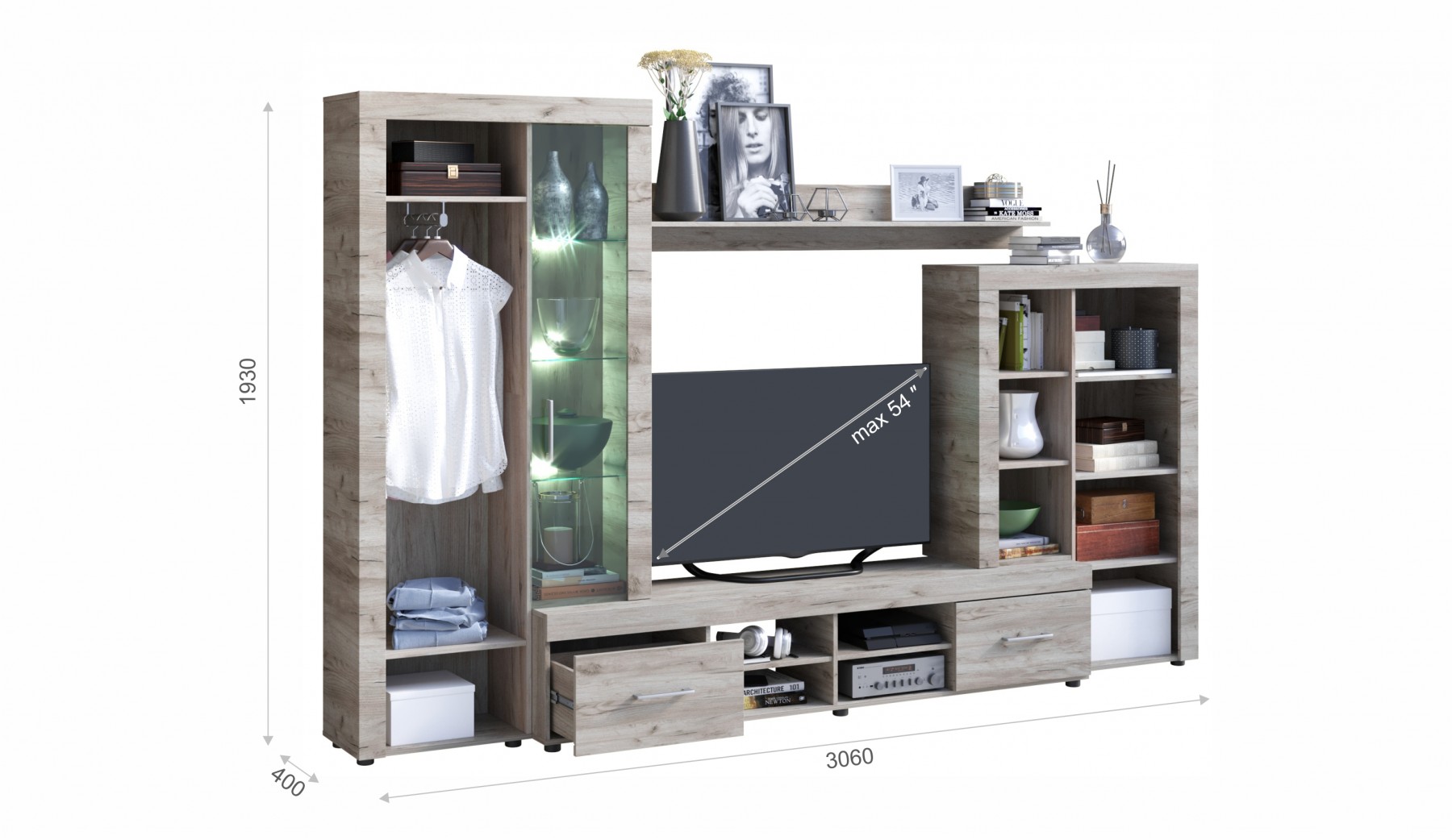 Габаритные размеры (Ш*Г*В): 3060х400х1930 мм