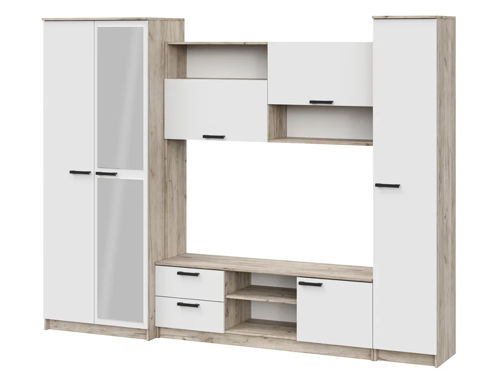Стенка Марта-12 Дуб Крафт серый/Белый
