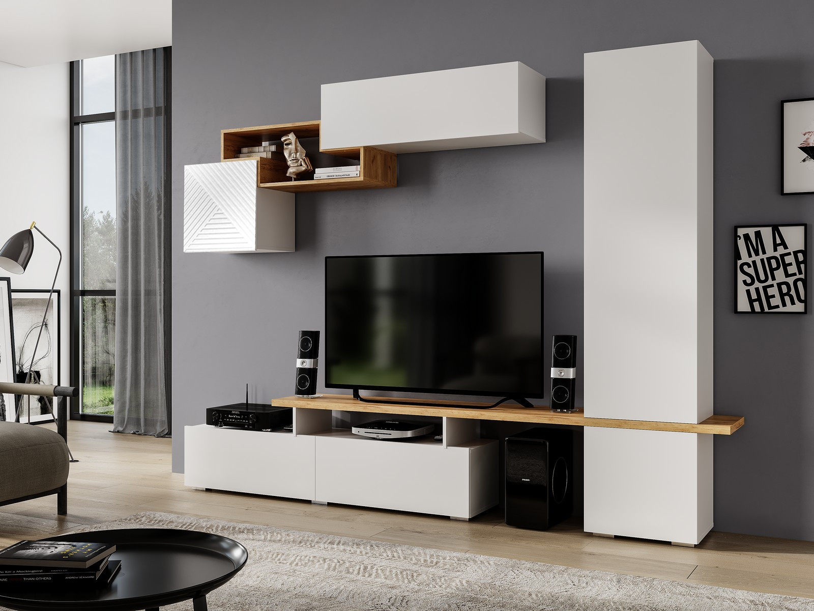 Тумба ТВ подвесная 1500 Норд Дуб Крафт Белый
