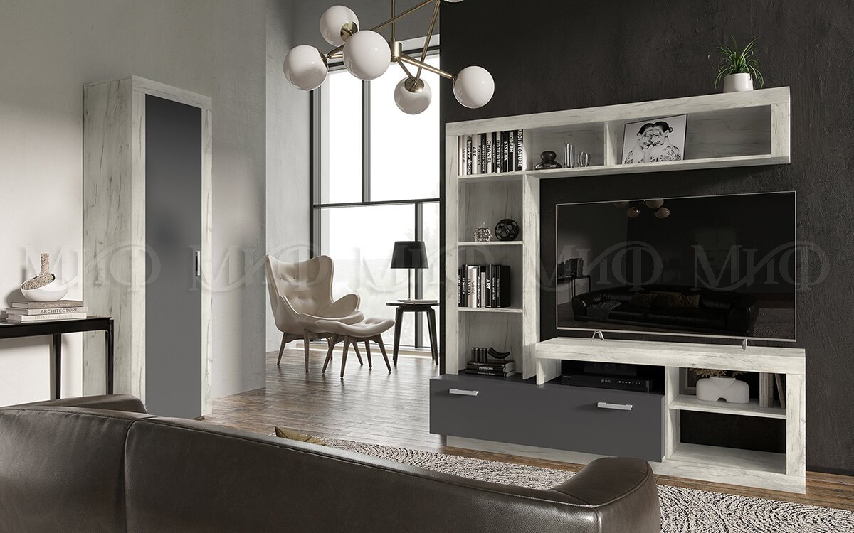 Гостиная Ангара Центральная секция Графит, Дуб Крафт Белый