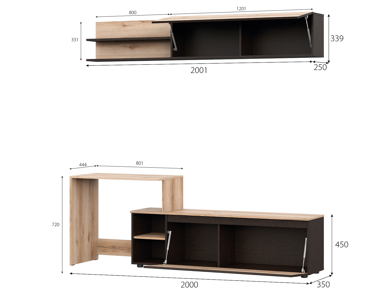- Верх: 2001 х 339 х 250 мм.
