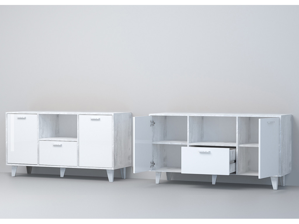 - Тумба Эго Т-2 бетон светлый/белый глянец на ножках