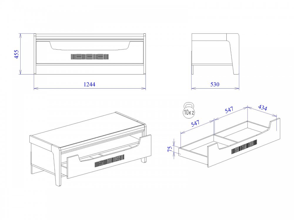 Размер Ш*Г*В: 1244*530*455 мм