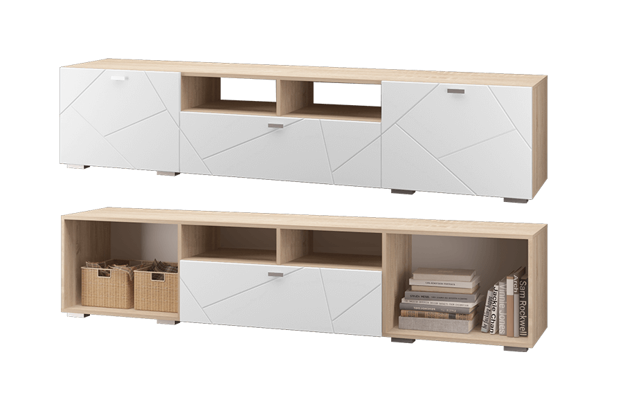 - Тумба под ТВ 1ящик 2 двери Скайлайн белый шагрень