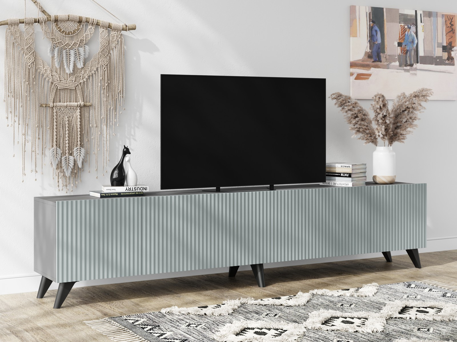- Тумба под ТВ Сканди МДФ грин грей софт с опорами