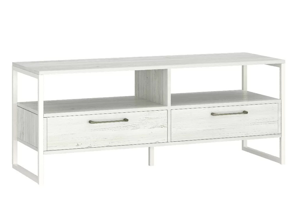 Тумба состоит из 2-х выкатных ящиков, вместительных пололок для ваших вещей и предметов декора.