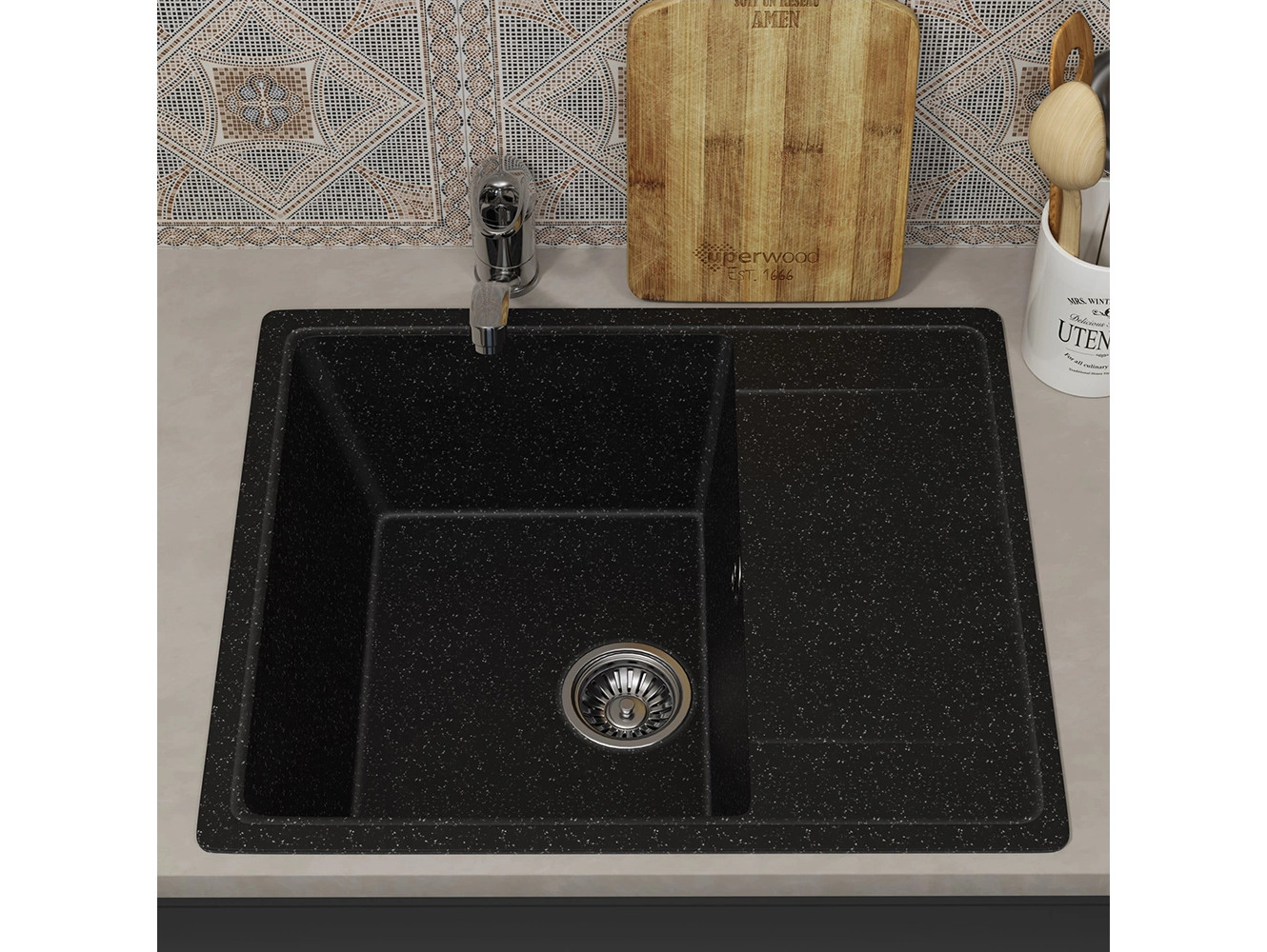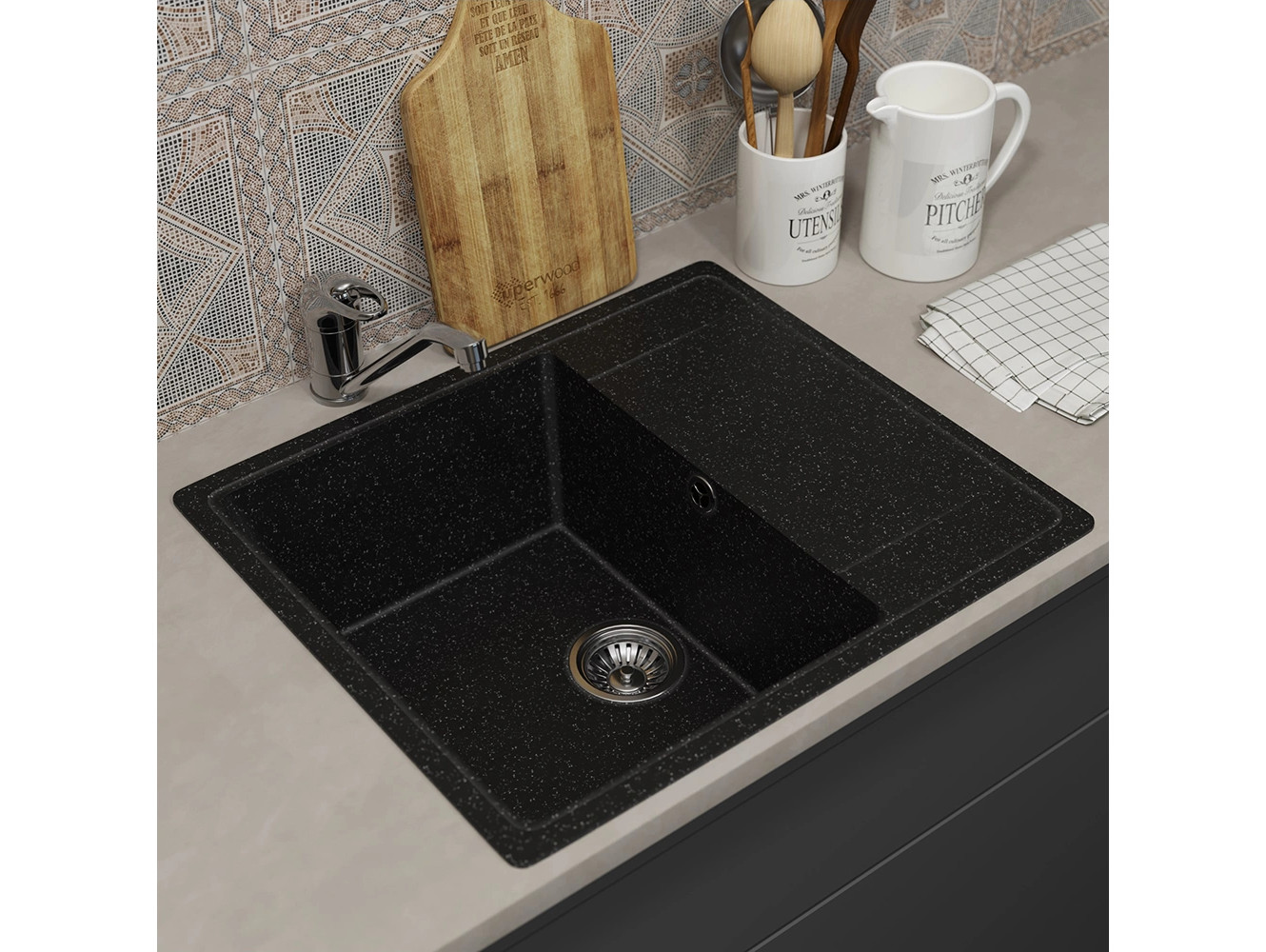 - Кухонная мойка Uperwood ECON UPD-201-004 черная матовая