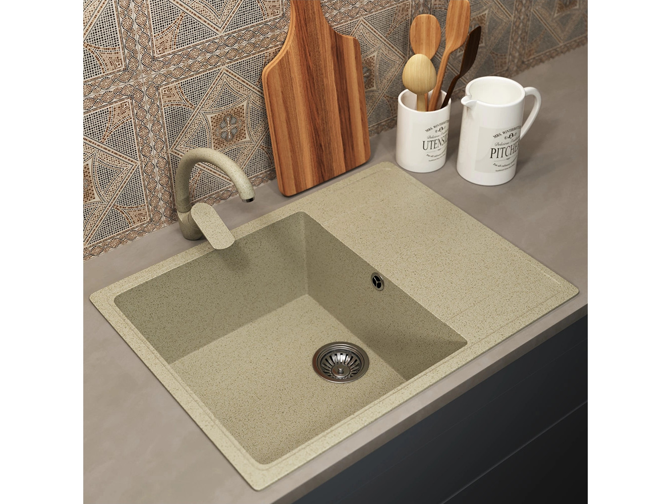 - Кухонная мойка Uperwood ECON UPD-202-002 бежевая матовая