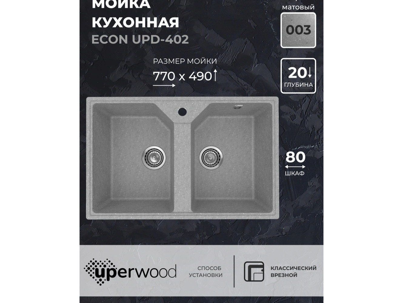 Кухонная мойка Uperwood ECON UPD-402-003 серая матовая
