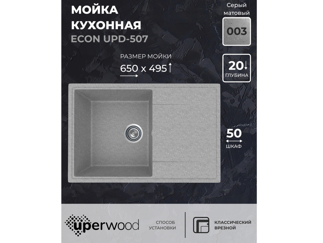 Кухонная мойка Uperwood ECON UPD-507-003 серая матовая