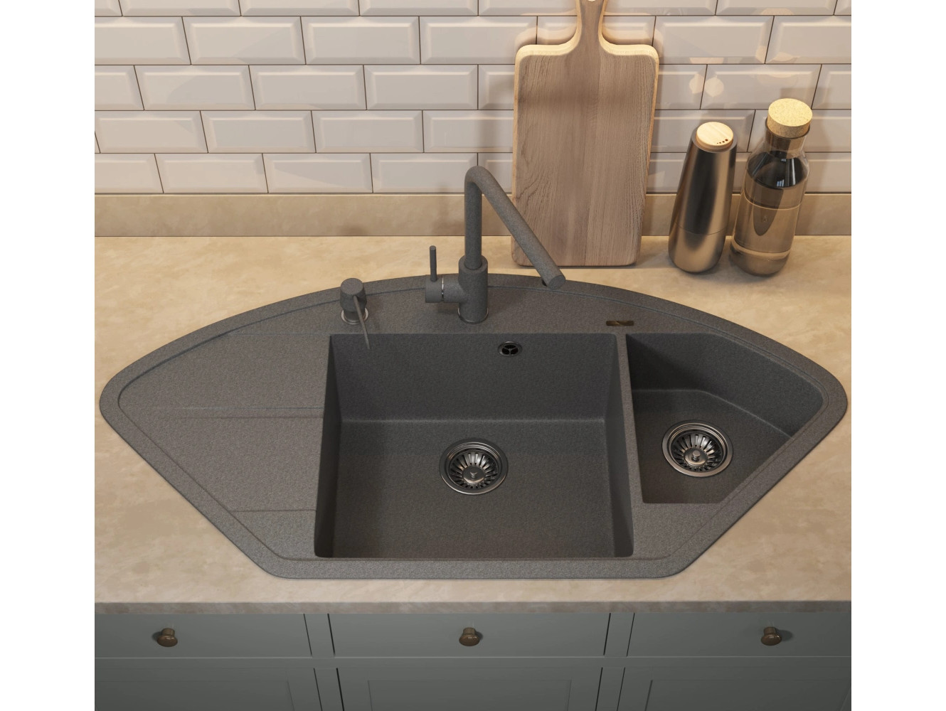 - Кухонная мойка Uperwood Quartz UPD-06-03 серая матовая