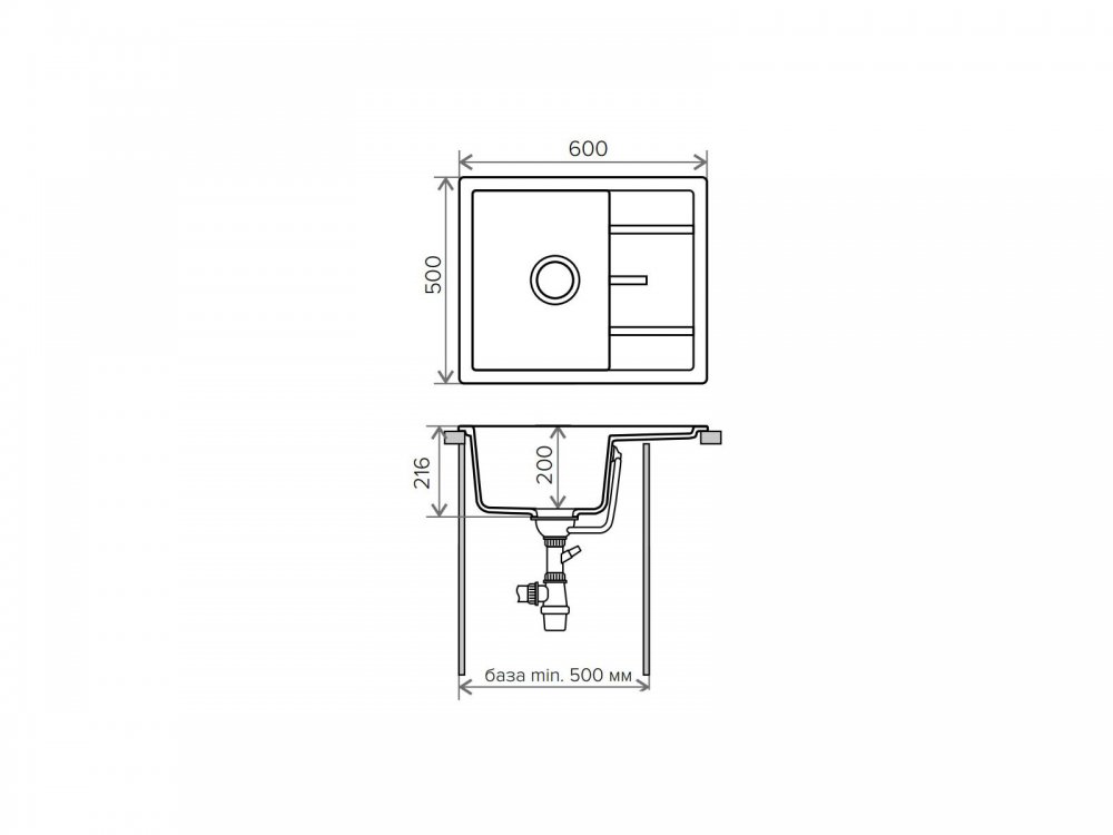 Минимальный размер тумбы под мойку, мм: 500
