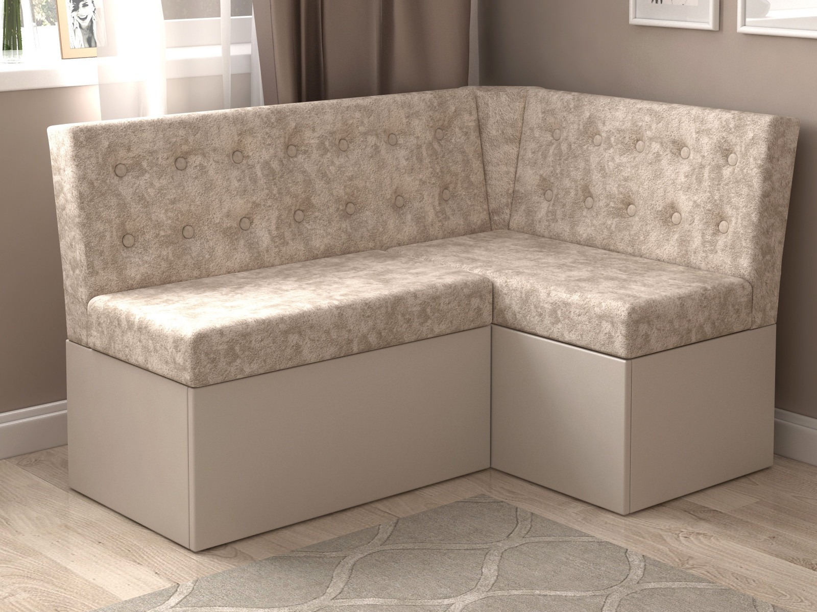 - Скамья угловая Олимп-мини Микровелюр Том бежевый
