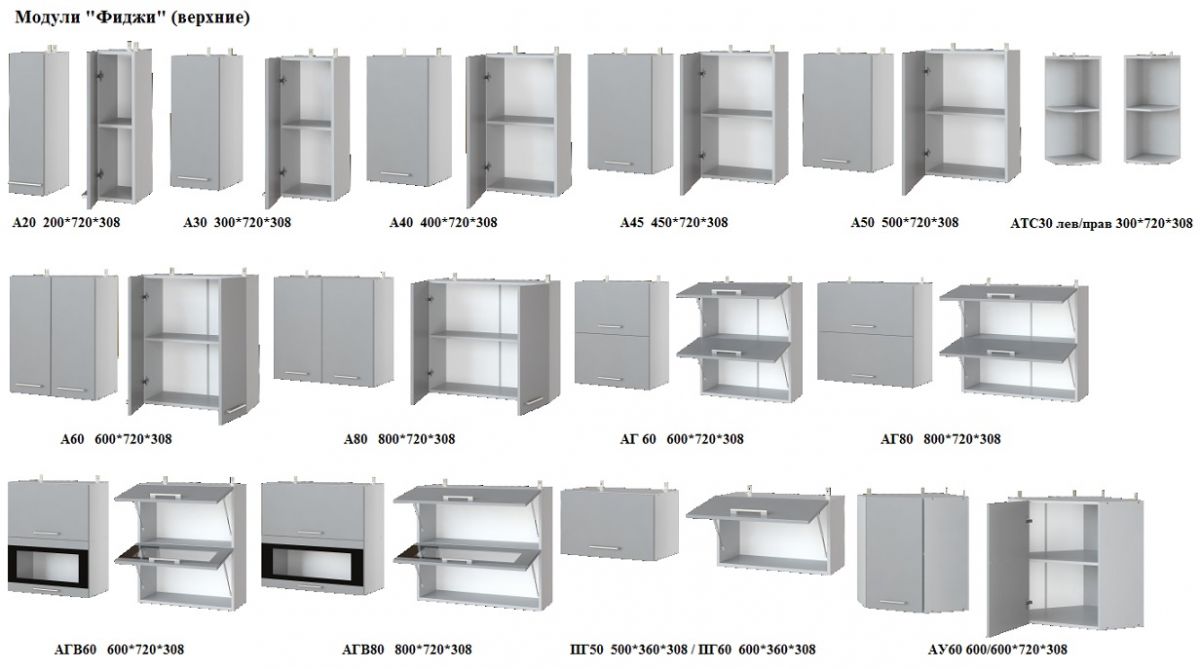 - фасады от верхних модулей (маркировка А) и фасады от нижних модулей (маркировка Н) являются взаимозаменяемыми;