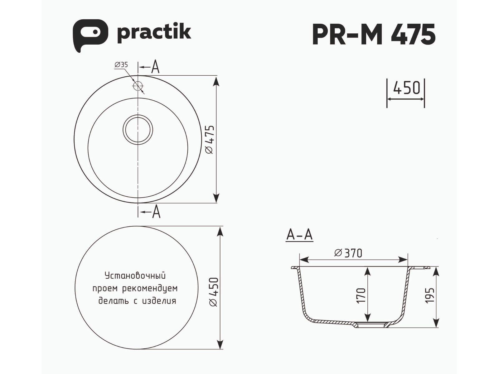 - Мойка Practik PR-M 475-004 черный оникс