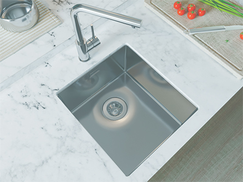 Мойка изготовлена из высококачественной стали толщиной 1 мм марки AISI 304 и имеет минимальные углы закругления 10мм.