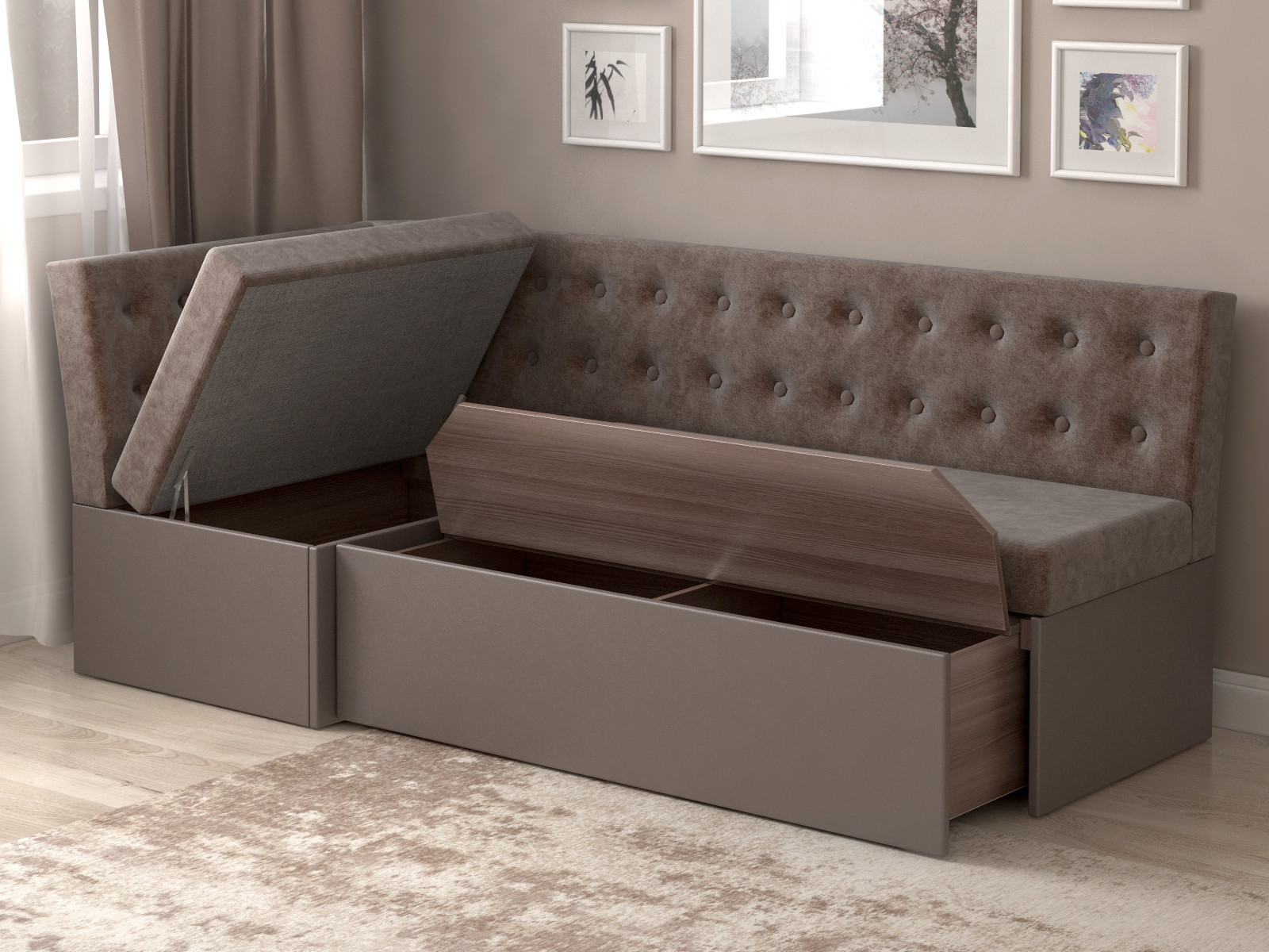 - Скамья угловая со спальным местом Олимп светло-серый