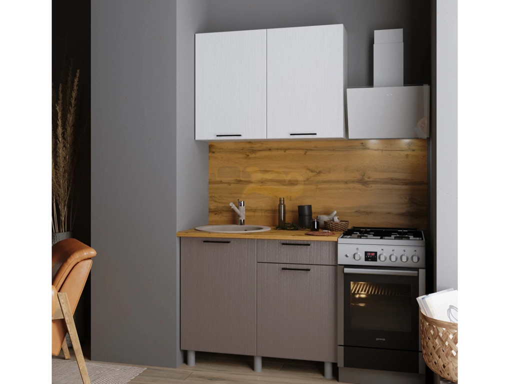 - Кухня Хилтон 1000 МДФ Клен Белый/Клен Серый без столешницы