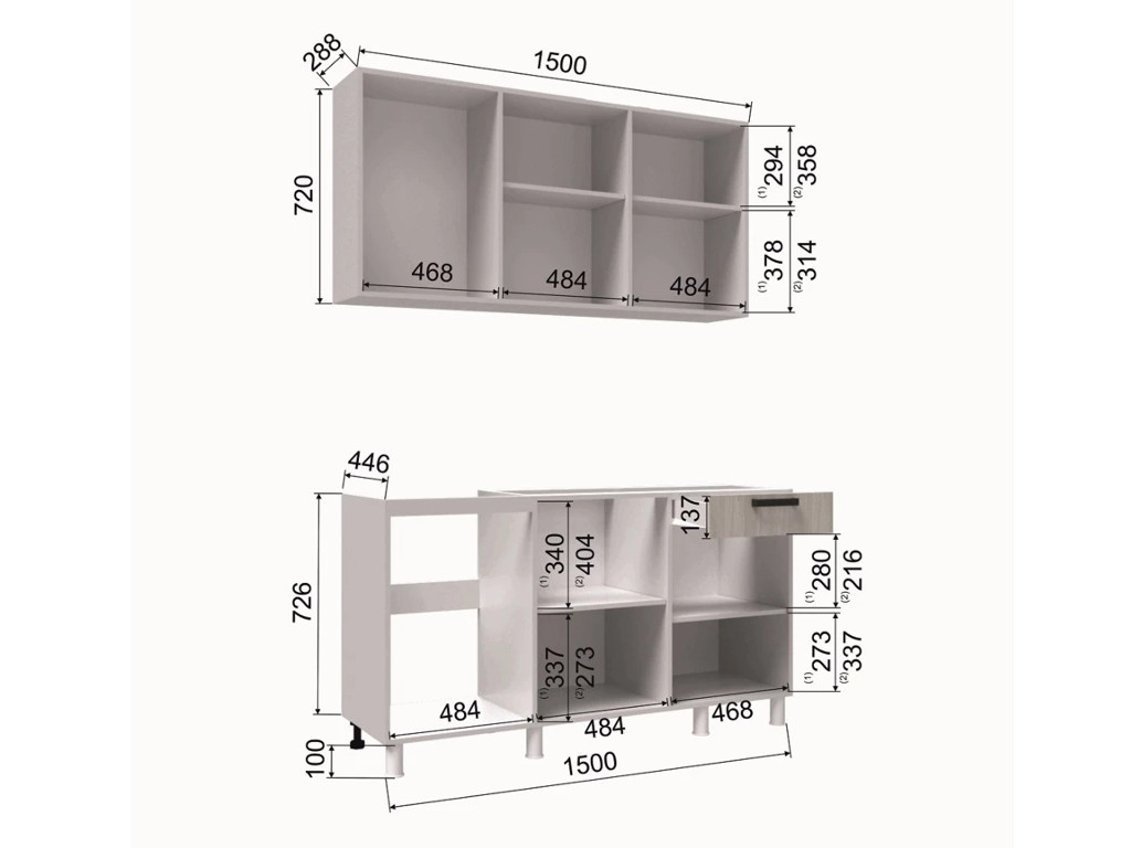 - Кухня Лига 1500 МДФ Сандал Белый/Сандал Серый без столешницы