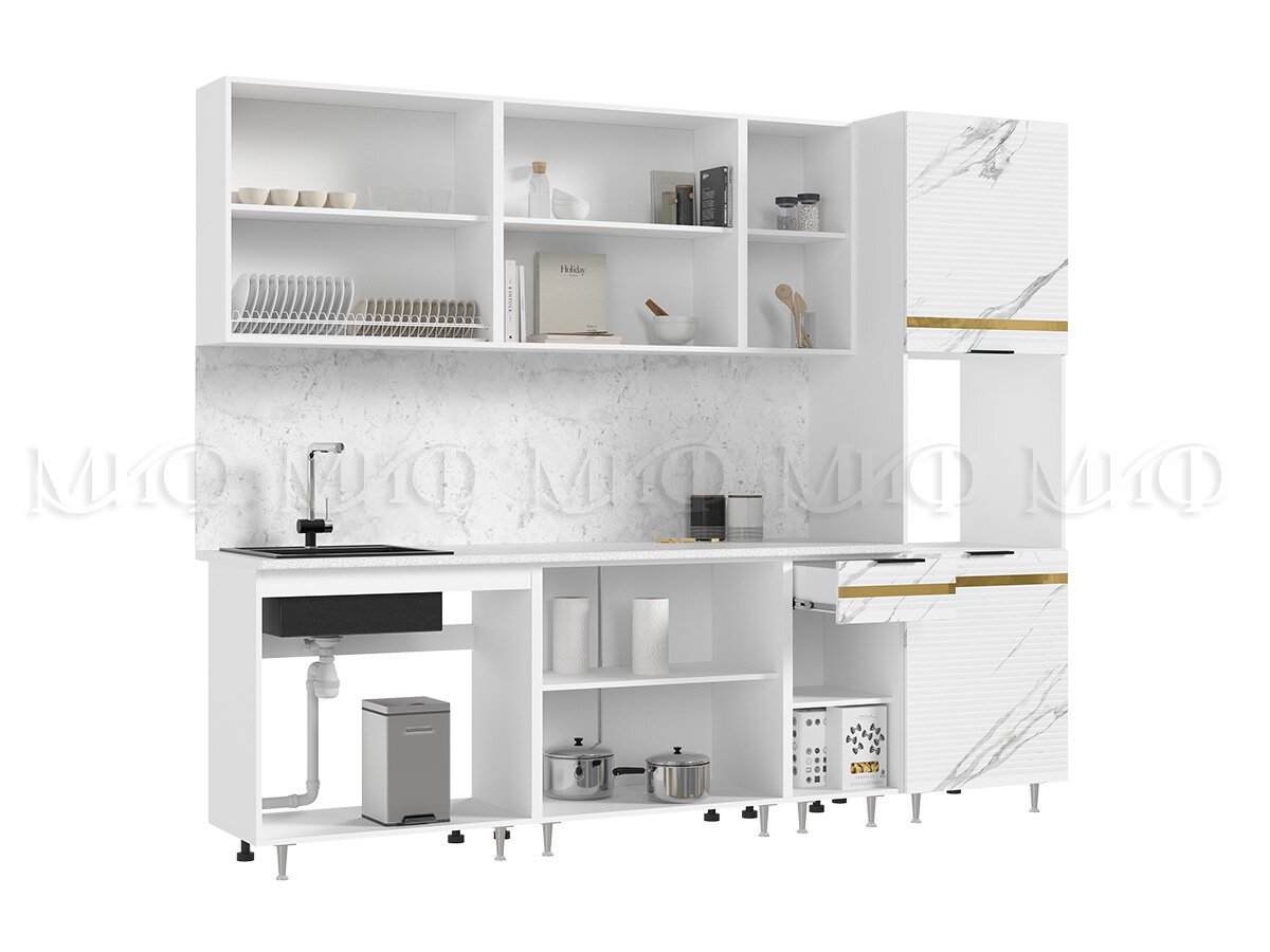 - Кухня Милена 2,6 м Мрамор белый софт/Мрамор блэк софт