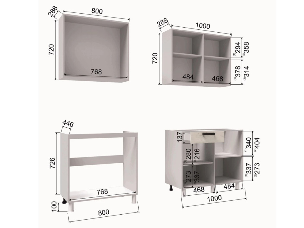 - Высота нижних шкафов, мм 826