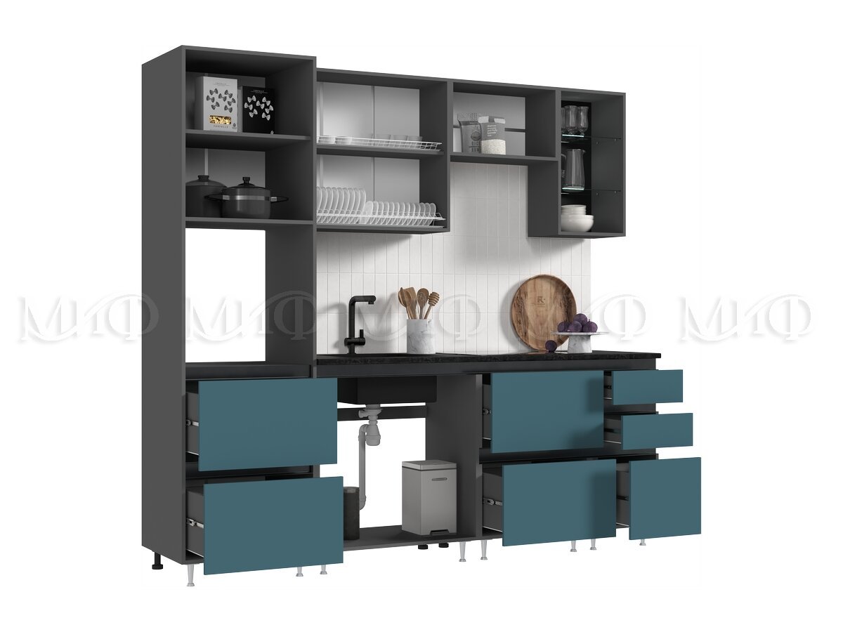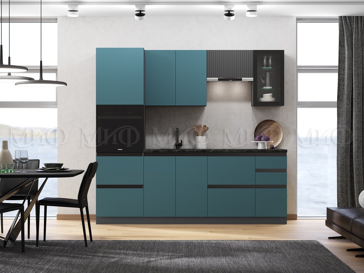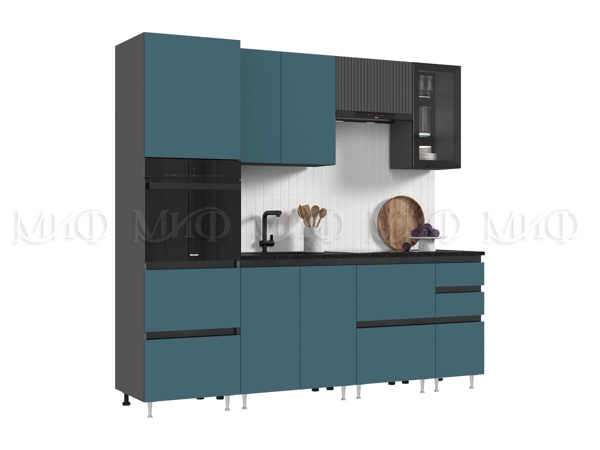 - Кухня Техно-6 2400 мм Графит/Атлантик софт