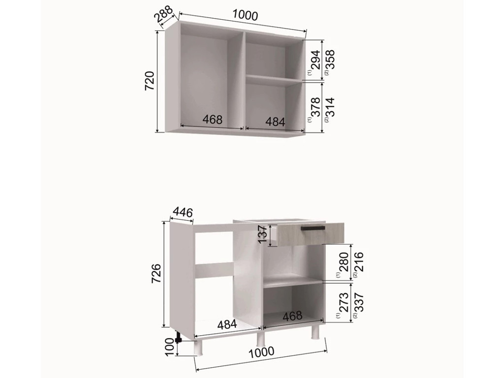 - Высота верхних шкафов, мм 720