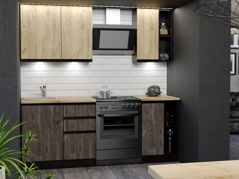 Мойка, смеситель, стеновая панель и посудосушитель в комплект гарнитура не входят.