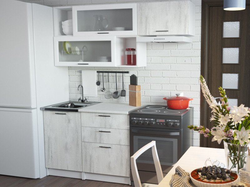 Мойка, смеситель, стеновая панель и посудосушитель в комплект гарнитура не входят.