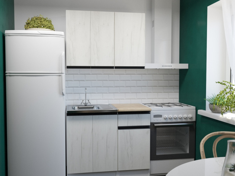 Мойка, смеситель, стеновая панель и посудосушитель в комплект гарнитура не входят.