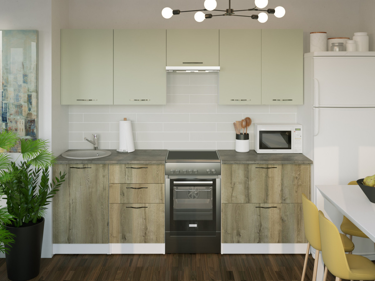 Мойка, смеситель, стеновая панель и посудосушитель в комплект гарнитура не входят.