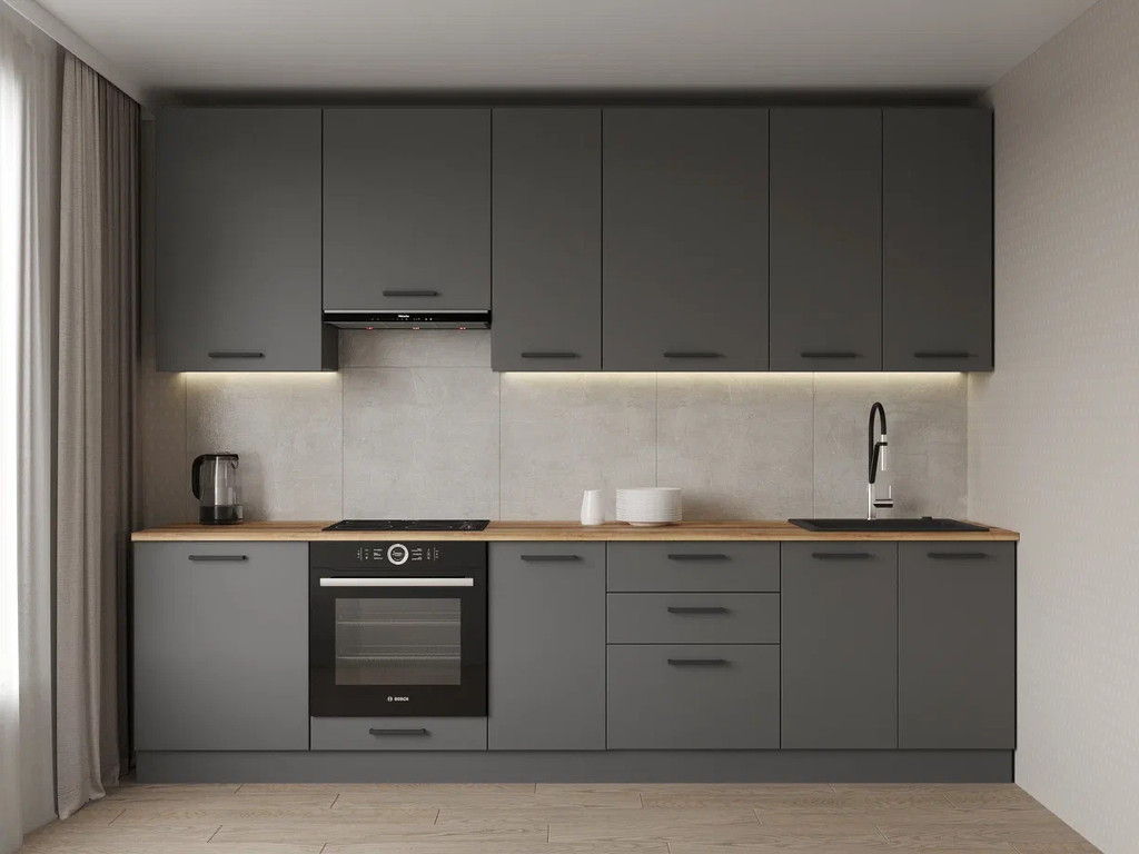 - Кухонный гарнитур Антрацит 3000 (верх 950 мм)