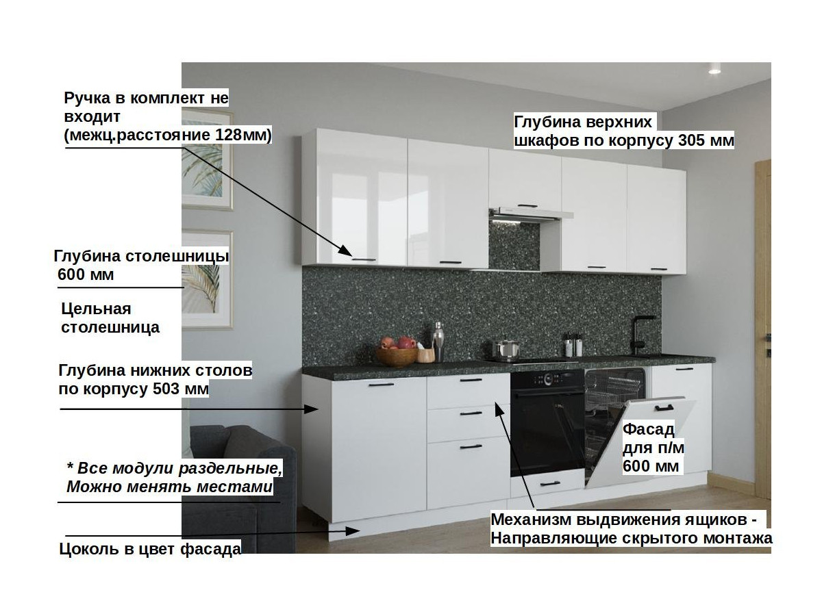 - Кухонный гарнитур арт 18 Белый глянец 3000 мм
