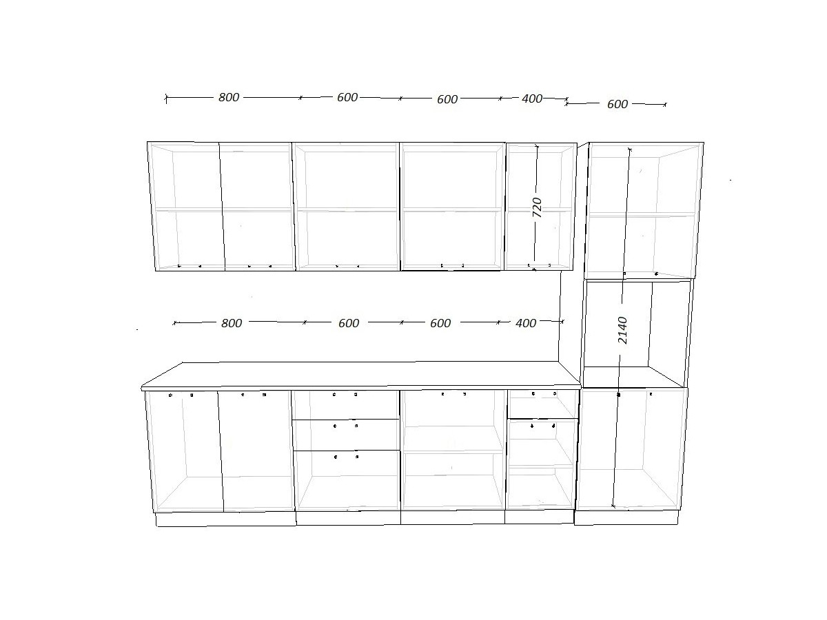 - высота верхних шкафов 720 мм