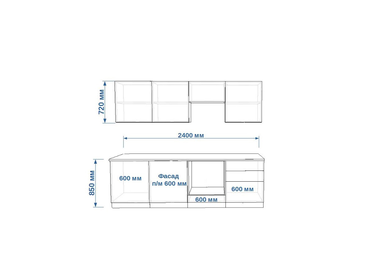 - высота верхних шкафов 720 мм
