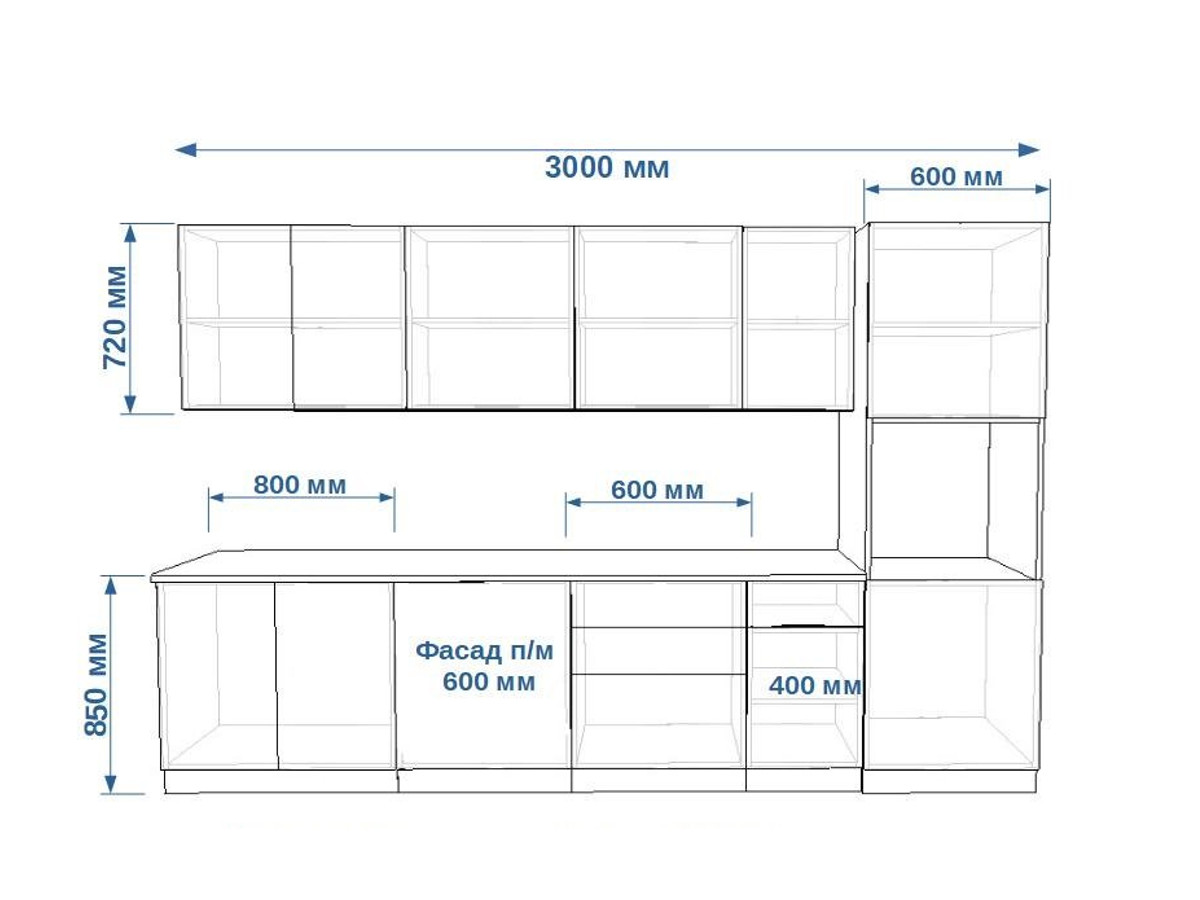 - высота верхних шкафов 720 мм