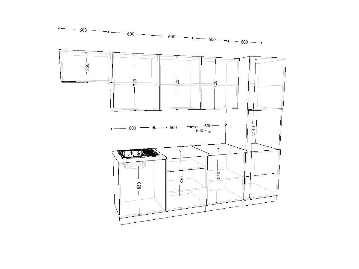 - высота верхних шкафов 720 мм