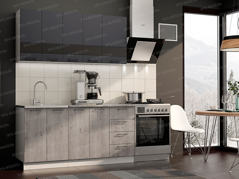 - Кухонный гарнитур Астра МДФ 1600 графит софт/дуб галиано