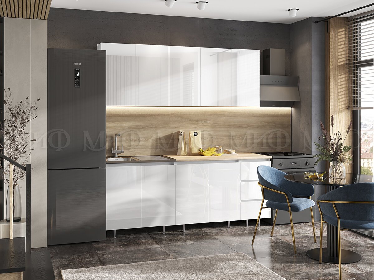 Кухонный гарнитур Челси 2000 мм Белый глянец холодный
