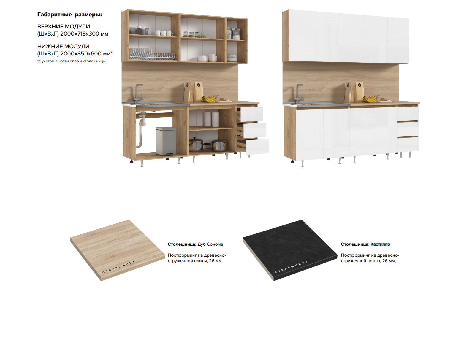 - Кухонный гарнитур Челси 2000 мм Белый глянец холодный