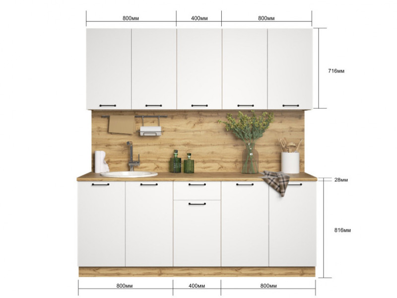 - Кухонный гарнитур Хелмер 2000 мм ЛДСП Вотан/Белый