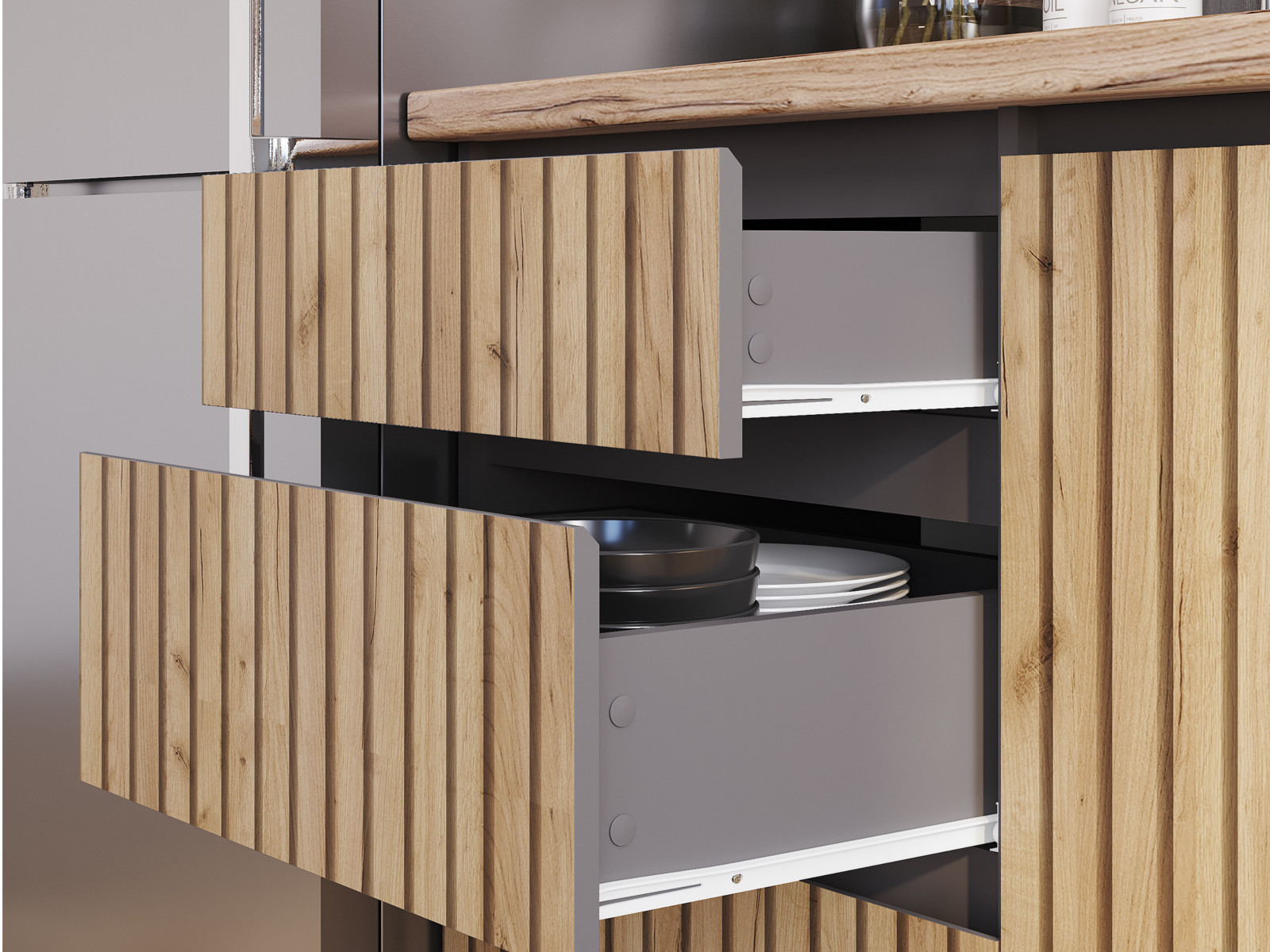 Цвет корпуса/цвет фасада: графит/графит, крафт с фотопечатью "рейки"