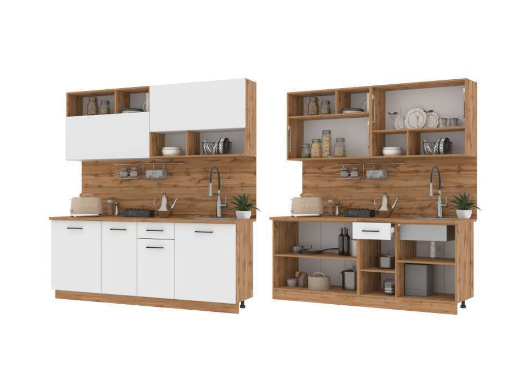 - Кухонный гарнитур Лайма ЛДСП 2000 мм Дуб Вотан-Белый