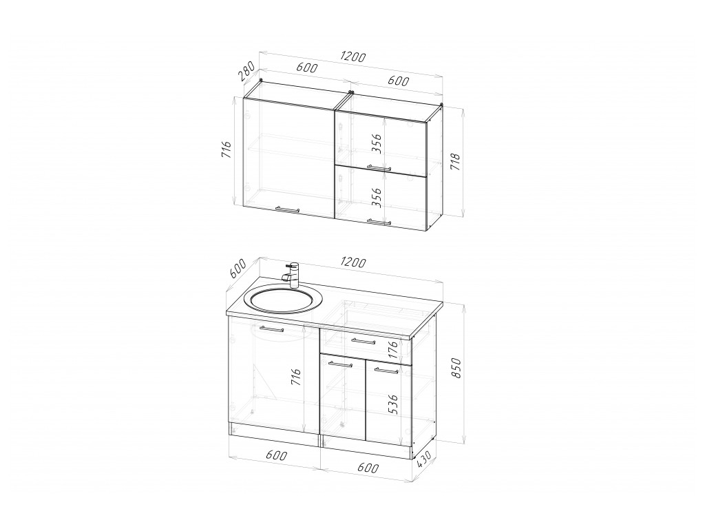- Высота шкафов, мм 720