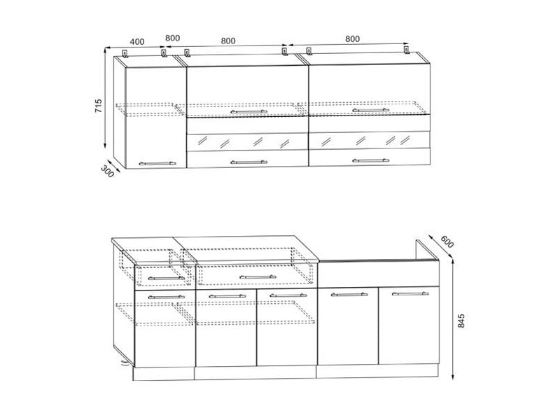 - Высота нижнего ряда: 845 мм, максимальная высота верхнего ряда: 715 мм.