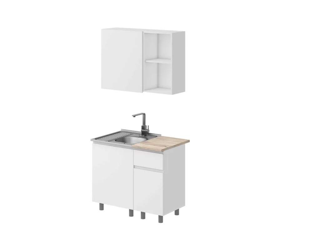 - Дополнительный нижний модуль (40х82х47 см): оборудован выдвижным ящиком для приборов и удобной полкой снизу — всё для быстрого доступа и аккуратности.