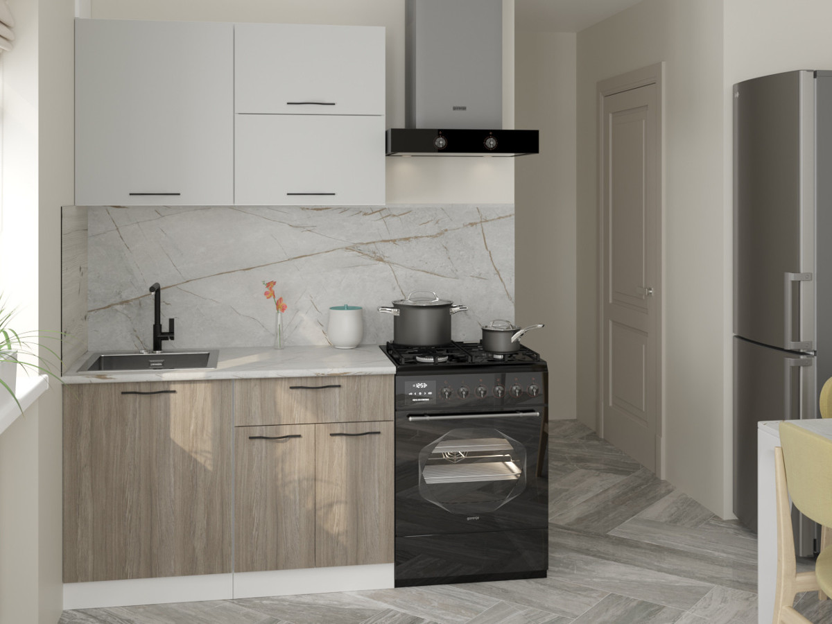 Мойка, смеситель, стеновая панель и посудосушитель в комплект гарнитура не входят.