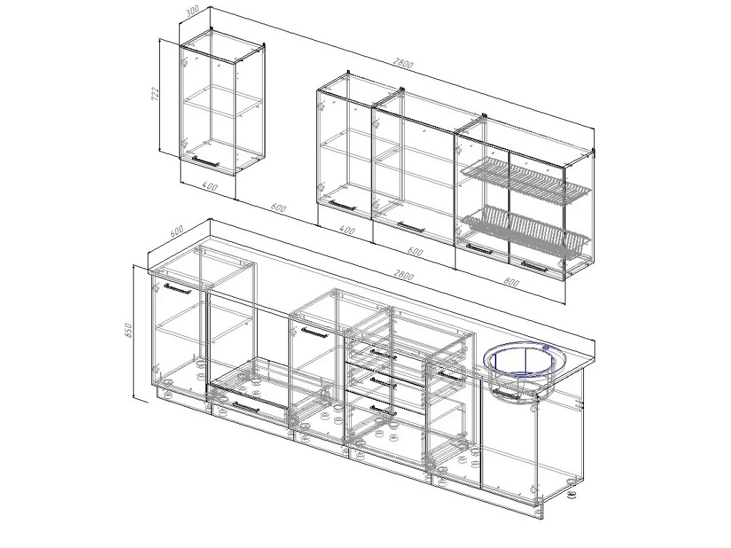 - Столешница: ЛДСП 26мм со скругленным краем (в пластике)