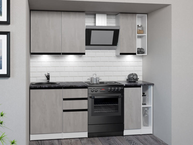 Мойка, смеситель, стеновая панель и посудосушитель в комплект гарнитура не входят.