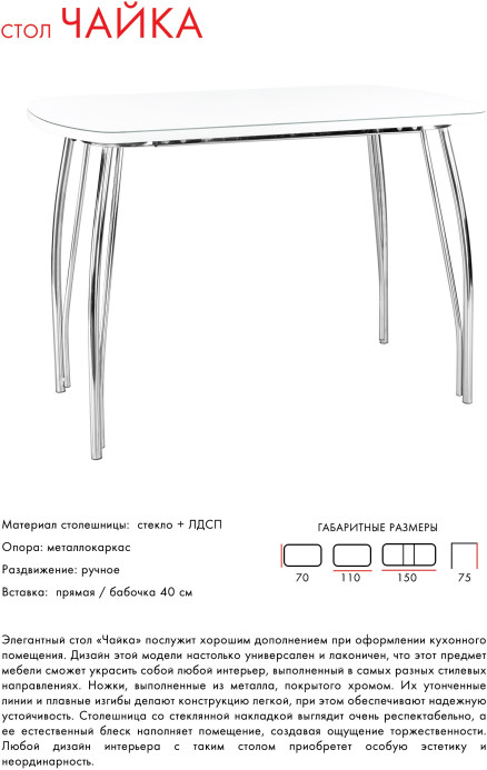- Стол Чайка раздвижной стекло